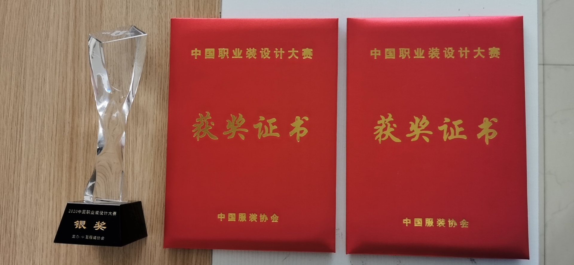 會議期間還舉行了“2020中國職業裝設計大賽”頒獎典禮。此次大賽,宜禾共提交兩個系列——守護系列、蔚藍天空系列。其中守護系列榮獲銀獎,蔚藍天空系列榮獲優秀獎。