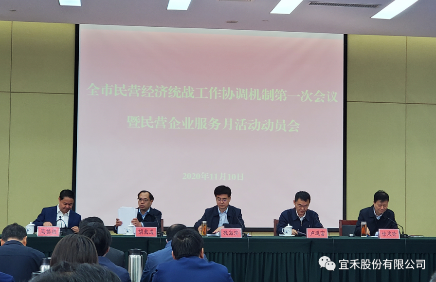 2020年11月10日,鎮江市召開民營經濟統戰工作協調機制第一次會議暨民營企業服務月活動動員會。鎮江市委副書記、統戰部部長鞏海濱出席會議并作動員講話。至此,我市在全省13個設區市首個建立的民營經濟統戰工作協調機制正式啟動,全市“五送五助”民營企業服務月活動拉開帷幕。宜禾股份有限公司董事長馬金芳作為民營企業負責人代表受邀參加會議。